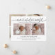 Cartão de anúncio de nascimento chic e moderno com 2 fotos na frente e 4 fotos no verso do cartão. Rótulo "nosso mundo inteiro" ligado com coração. Tipografia moderna e clássica.