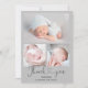 Cartões de agradecimentos moderno , 4 fotos anúncio de nascimento de bebê , com um legal e elegante roteiro de pincel e cores de coração e editáveis. Adicione 4 das suas fotos de bebê favoritas em cinzas editáveis.