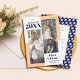 Classe moderna de 2023, quatro fotos de pêssego e marinho azul de lançamento. Inclui quatro fotos do formando em blocos coloridos de pêssego e marinho azul e branco.