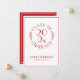 Enviar anúncios clássicos de graduação apresentando um símbolo vermelho-chic em um emblema tipográfico branco que diz: CLASSE DE [ANO] FORMANDO com as palavras curvando ao redor do ano no meio com folhas botânicas curvas ao longo de cada lado da design circular. Abaixo do emblema está o nome do formando e a escola em uma fonte de serifa vermelha elegante. Um retângulo vermelho fino cria uma borda perto da borda. Personalize o ano, o nome e a escola na barra lateral. Personalize-o para qualquer tipo de formando: segundo grau, faculdade, escola de formandos, faculdade de direito, escola de medicina ou escola de comércio. A parte traseira é vermelha com uma borda retangular branca fina perto da borda. Para ver o design em outros itens, clique no link de coleta "Artes Rocklawn". Copyright ©Claire E. Skinner. Todos os direitos reservados.