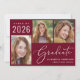 Anúncio de graduação vermelho burgundy 2025 Classe Simples, com 3 fotos de colagem e "Formando" em um roteiro elegante e branco. Adicione o nome do formando, ano de aula e escola na tipografia branca moderna.