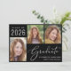 Anúncio de graduação em preto 2025 da Classe Simples, que apresenta uma colagem de fotos de 3 fotos e um "Formando" em um roteiro elegante em branco. Adicione o nome do formando, ano de aula e escola ou universidade na tipografia branca moderna.