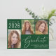 Anúncio de graduação verde da Classe Moderna de 2025 com fotos apresentando uma colagem de 3 fotos e um "Formando" em um elegante roteiro branco. Adicione o nome do formando, ano de aula e escola ou universidade em tipografia branca simples.