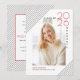 Anúncio de foto de formatura de graduado da turma de 2026 com linhas modernas em preto e vermelho. Um design elegante que destaca sua foto, listras pretas nos cantos superior esquerdo e inferior direito, o ano de 2026 em vermelho e a palavra "Graduado". A parte traseira inclui uma moldura com sua redação e uma borda listrada em preto e branco.