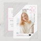 A classe moderna de anúncio de fotos de graduação em preto e rosa em 2025. Um design elegante que mostra sua foto, listras pretas nos cantos superior esquerdo e inferior direito, o ano de 2025 em rosa e a palavra "Formando". O verso inclui um quadro com a sua redação e uma borda listrada a preto e branco.