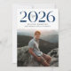 Celebre o marco do seu formando com este anúncio de graduação da Classe na moda de 2025. O design apresenta uma foto vertical de hemorragia de cheio, mantendo o foco no formando. No topo, marinho em negrito e serif e letras de script negros exibem elegantemente "Classe de 2025" para um toque clássico. Personalize a frente com o nome do formando e a escola para torná-la exclusiva deles. O verso contém uma foto quadrada com espaço para uma mensagem personalizada, perfeita para compartilhar planos futuros ou uma nota sincera. Projetado para formandos segundos graus e universitários, este anúncio é uma forma eterno de honrar sua conquista.