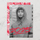 Comemore sua graduação com este anúncio moderno da Classe 2025, perfeito para formandos de segundos graus e faculdades. Apresentando sua foto vertical e um ousado "2025" escrito à mão com um detalhe elegante, este na moda é fácil de personalizar com seu nome e escola. A parte de trás mostra um padrão vibrante vermelho e branco de pinceladas, acrescentando um toque contemporâneo e atraente aos olhos para sua manutenção de graduação.