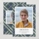 Celebrate your graduate with this classic photo graduation announcement featuring a timeless plaid border and a clean, modern layout. Designed to showcase a senior portrait front and center, this personalized graduation card includes space for the graduate’s name, school, and class year.
