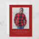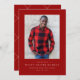 Comemore seu formando com este anúncio de formatura simples e clássico de uma foto. O grande espaço vertical fotográfico e a simples tipografia são perfeitos para mostrar fotos de mais velho. O tipo inclui muito espaço para nome, escola e ano, e o fundo vermelho corresponde ao backer do cartão.