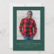 Comemore seu formando com este anúncio clássico e simples de graduação em uma foto. O tipo abaixo da foto vertical inclui bastante espaço para o nome do formando, faculdade ou segundo grau e ano em um verde-caçador, que corresponde à parte traseira da carta. A cor verde pode ser ajustada a qualquer cor escolar clicando em "Personalizar mais".