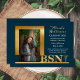 Clássico e elegante texto de ouro fotográfico "BSN" caduceus caduceus, design de anúncio de graduação em enfermagem por Designs Holiday Hearts (direitos reservados). Foto de modelo do espaço reservado, cortesia de Unsplash.