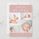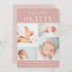 Os anúncios de nascimento elegantes apresentam quatro fotos recém-nascidas dispostas em um layout de colagem em grade, sobre um fundo rosado empoeirado. "Welcome [name]" (Bem-vindo [name]) aparece no topo no script de caligrafia e no texto clássico do bloco. Personalize com o nome do cheio do bebê, estatísticas de natalidade e uma assinatura familiar no fundo.