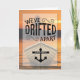 Algo um pouco diferente para atrair esses clientes e clientes latentes de volta à sua empresa. Um barco à deriva em pares do pôr do sol com a tipografia "Separamos" para um cartão temático náutico com o seu nome comercial na âncora.