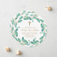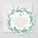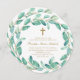 Folhas de eucalipto botânico com bênção da Mãe Cristã apresenta uma bela coroa de folhas de cor aquosa verde e o nome da mãe em elegante guião dourado. A parte de trás é o seu código rsvp qr personalizado, para que os convidados possam responder facilmente ao seu convite. Celebrar a mãe a ser e a nascer com um tempo de bênção, oração, amizade, encorajamento e comunidade. Dobra a mãe a ser e a bebê em oração e comunidade. Este simples convite é perfeito para um convite de uma festa católica de bênção.