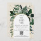 Moderno, dissemos que sim, o Elegante Beige Botanical Greenery foto de casamento Anúncio com código QR. Os destinatários podem digitalizar o código de barras que liga ao seu site de casamento que mostra suas fotos e muito mais.