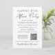 Anúncio de casamento discreto e elegante ou convite para festa de celebração ou recepção de casamento. A frente apresenta "Festa Feliz para Sempre" em uma mistura de tipografia simples e uma fonte moderna. Personalize sua mensagem e convite com mais detalhes, insira o URL do site do seu casamento para criar um código QR para que os convidados leiam e respondam online e acessem outros detalhes, e adicione seus nomes em uma fonte com estilo de assinatura. O verso apresenta sua foto de casamento favorita, seus primeiros nomes e data do casamento.
