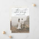 A Elegância se desdobra com o nosso Convidado de Casamento Feliz de "Festa Depois" Celebre o início de sua eternidade em estilo e convide seus entes queridos a continuarem as festividades com os nossos convites de casamento "Feliz de Todos Após a Festa". Projetado para ecoar a alegria e sofisticação de seu dia especial, este convite é uma combinação perfeita de elegância e celebração. Design da frente: Enquanto os convidados fazem o convite, eles são recebidos por uma incrível foto vertical de cheio captando um momento franco e alegre do seu casamento — seus sorrisos, o cenário, o ambiente — todos insinuando a revelação a ser feita. Sobreposta a esta fotografia, a frase "feliz para sempre 'depois da festa'" é penalizada num belo roteiro escrito à mão, incorporando a transição perfeita dos vossos votos ao entretenimento da noite. Abaixo, os nomes do casal e a data do seu sindicato são bem apresentados, servindo de recordação precioso do seu dia. Design de trás: Sacudir a carta para descobrir um anúncio de casamento, elegantemente enquadrado e levando ao caloroso convite para o seu casamento após a festa de recepção. Uma foto horizontal de casamento — cuidadosamente selecionada por você — serve como pano de fundo pessoal para os detalhes da sua família, criando uma conexão íntima com cada destinatário. Todas as palavras estão saborosamente dispostas a convidar os vossos convidados para o coração da vossa celebração, assegurando-lhes que sabem quão importante é a sua presença para a continuação da vossa história de amor. Inclua seu site de casamento e código QR para atrair seus convidados para ver mais fotos de seus núpcias, e dê seus rsvps no seu site de casamento. Recursos do produto: Papel de alta qualidade: Papel grosso e premium que se sente tão luxuoso quanto parece, disponível em vários acabamentos para se adequar ao seu gosto pessoal. Fotos personalizáveis: escolha as suas fotos de dia de casamento mais apreciadas para um toque verdadeiramente personalizado. Elegante Script: O estilo manuscrito adiciona um toque de capricho e romance ao sofisticado design. Informações detalhadas: Todos os detalhes pertinentes são apresentados em um formato claro e elegante, garantindo que seus convidados tenham todas as informações necessárias. Tamanho e Forma: Uma orientação paisagística moderna oferece uma apresentação dinâmica e envolvente. Com os nossos convites "Feliz Festa Nunca Depois", a magia do seu dia de casamento estende-se à noite e além. Envie esta última chamada para a diversão, um belo lembrete de que enquanto a cerimônia pode acabar, a celebração do seu sindicato está apenas começando. [Encomenda agora] e deixe as memórias continuarem em estilo! Entre em contato com o designer para produtos correspondentes. Copyright Anastasia Surridge, todos os direitos reservados.