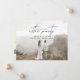 A Elegância se desdobra com nosso Código Felizmente Nunca ‘Depois da Festa’ Creme 2 Foto Anúncio de Convite de Casamento Comemora o início de sua eternidade no estilo e convida seus entes queridos a continuarem as festividades com nossos convites de casamento 'Feliz Nunca Depois da Festa'. Projetado para ecoar a alegria e sofisticação de seu dia especial, este convite é uma combinação perfeita de elegância e celebração. Design da frente: Enquanto os convidados fazem o convite, eles são recebidos por uma incrível foto horizontal de cheio captando um momento alegre e fantoche do seu casamento — seus sorrisos, o cenário, o ambiente — todos insinuando a revelação a ser feita. Sobreposta a esta fotografia, a frase "feliz para sempre 'depois da festa'" é penalizada num belo roteiro escrito à mão, incorporando a transição perfeita dos vossos votos ao entretenimento da noite. Abaixo, os nomes do casal e a data do seu sindicato são bem apresentados, servindo de recordação precioso do seu dia. Design de trás: Sacudir a carta para descobrir um anúncio de casamento, elegantemente enquadrado e levando ao caloroso convite para o seu casamento após a festa de recepção. Uma foto de casamento vertical — cuidadosamente selecionada por você — serve como pano de fundo pessoal para os detalhes da sua família, criando uma conexão íntima com cada destinatário. Todas as palavras estão saborosamente dispostas a convidar os vossos convidados para o coração da vossa celebração, assegurando-lhes que sabem quão importante é a sua presença para a continuação da vossa história de amor. Inclua seu site de casamento e o Código QR para atrair seus convidados para ver mais fotos de seus núpcias, e dê seus rsvps no seu site de casamento. Recursos do produto: Papel de alta qualidade: Papel grosso e premium que se sente tão luxuoso quanto parece, disponível em vários acabamentos para se adequar ao seu gosto pessoal. Fotos personalizáveis: escolha as suas fotos de dia de casamento mais apreciadas para um toque verdadeiramente personalizado. Elegante Script: O estilo manuscrito adiciona um toque de capricho e romance ao sofisticado design. Informações detalhadas: Todos os detalhes pertinentes são apresentados em um formato claro e elegante, garantindo que seus convidados tenham todas as informações necessárias. Tamanho e Forma: Uma orientação paisagística moderna oferece uma apresentação dinâmica e envolvente. Com os nossos convites "Feliz Festa Nunca Depois", a magia do seu dia de casamento estende-se à noite e além. Envie esta última chamada para a diversão, um belo lembrete de que enquanto a cerimônia pode acabar, a celebração do seu sindicato está apenas começando. [Encomenda agora] e deixe as memórias continuarem em estilo! Entre em contato com o designer para produtos correspondentes. Copyright Anastasia Surridge, todos os direitos reservados.