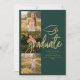 Roteiro de Colagem de 4 Fotos de Formatura Verde e Dourado para a turma de 2026. Personalize facilmente alterando o texto e substituindo as fotos pelas suas. Uma maneira moderna e atual de anunciar sua formatura este ano!