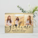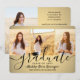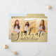 Compartilhe a alegria de uma formatura do ensino médio ou faculdade com esses convites personalizados de colagem de 4 fotos pretas e douradas. Todas as imagens e textos são fáceis de personalizar. (DICA DE COLOCAÇÃO DE IMAGEM: Uma maneira fácil de centralizar uma foto exatamente como você deseja é cortá-la antes de fazer o upload para o site da Zazzle.) Este modelo pode ser personalizado com qualquer detalhe de sua escolha, como informações de convite para festa, nomes dos pais, honrarias especiais, título do diploma, citação inspiradora favorita, novo endereço / informações de contato do graduado, planos de educação futura ou novo cargo. Se houver algum texto que não seja desejado, basta excluí-lo. O design apresenta um fundo de falso foil, gorro de formatura preto, caligrafia de estilo manuscrito, tipografia minimalista moderna e quatro fotos de sua escolha, como fotos de formatura ou imagens da cerimônia de formatura. Por favor, note que o dourado é uma cor impressa, não foil metálico. Esses cartões de anúncio de formatura são uma maneira moderna e elegante de compartilhar a celebra