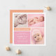 Apresente a sua nova menina à família e aos amigos em estilo com esta design de nascimento moderna e de blocos coloridos. O cartão quadrado inclui três cartazes para mostrar as suas fotografias recém-nascidas favoritas, um esquema cor rosa, laranja e branco, e pop de cor laranja no verso do cartão.