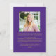 Anuncie seu segundo grau ou formando universitário com este anúncio de fotos elegante roxo e ouro (ou outra cor de fundo) com 6 fotos (5 na frente e 1 na parte traseira), um boné de formatura de folha de ouro metálico falso elegante ou um quadro de papel, o título FORMANDO ANO com seu nome de formando em um roteiro manuscrito e nome da escola. O verso foi projetado para incluir informações sobre as realizações, atividades e planos futuros de seus formandos, conforme desejado. ASSISTÊNCIA: Para obter ajuda sobre modificação/personalização do design, alteração de cor, transferência do design para outro produto ou se você quiser coordenar itens, entre em contato com o designer ANTES DE PEDIR por meio do Zazzle Chat ou makeitaboutyoustore@gmail.com.