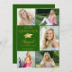 Anuncie seu segundo grau ou formando universitário com este anúncio elegante de fotos em verde e ouro (ou outra cor de fundo) com 6 fotos (5 na frente e 1 na parte traseira), um elegante boné de formatura metálico de folha de ouro ou cartão de papel, o título FORMANDO ANO com seu nome de formando em um roteiro manuscrito e nome da escola. O verso foi projetado para incluir informações sobre as realizações, atividades e planos futuros de seus formandos, conforme desejado. ASSISTÊNCIA: Para obter ajuda sobre modificação/personalização do design, alteração de cor, transferência do design para outro produto ou se você quiser coordenar itens, entre em contato com o designer ANTES DE PEDIR por meio do Zazzle Chat ou makeitaboutyoustore@gmail.com.