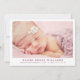 Cartão de anúncio de nascimento de foto com estilo simples apresenta sua bebê menina com uma grande foto de recém-nascido em paisagem na frente, emoldurada por uma borda branca limpa com nome em serifa espaçada clássica e detalhes de nascimento em rosa malva. A parte de trás apresenta uma colagem quadrada de seis fotos com uma mensagem "Recebida com Amor" dos pais. A cor do texto em rosa malva pode ser personalizada. Todo o texto é totalmente editável.