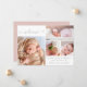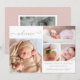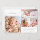 Anuncie a chegada da sua bebê menina com este anúncio de nascimento moderno de dupla face. A frente apresenta uma colagem de quatro fotos com uma tipografia cinza claro simples. Personalize com o nome do seu bebê, data de nascimento, estatísticas de nascimento e nomes dos pais.