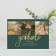 Anúncio de Colagem de Fotos de Formatura 4 Script Verde e Dourado para a turma de 2026. Personalize facilmente alterando o texto e substituindo as fotos pelas suas. Uma maneira moderna e atual de anunciar sua formatura este ano!