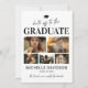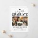 Cartão de anúncio de formatura elegante de 2025 com 6 fotos do formando, o texto "parabéns ao formando", o nome dele, ano de formatura, um boné de formatura, a citação inspiradora "o esforço valeu a pena" e quais são os planos para o futuro.