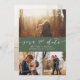 Escolha as melhores fotos de sua filmagem de noivado ou suas fotos favoritas de vocês dois para salvar a data perfeita. As palavras salvar a data são manuscritas para dar uma sensação pessoal ao cartão postal. Edite esta opção para salvar o cartão de casamento de data com suas informações e personalizá-lo para outras opções de fonte e cor de fonte.