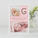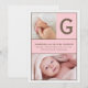 Este anúncio de nascimento mostra duas fotos do seu bebê e sua inicial em castanho.