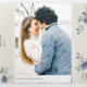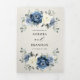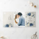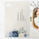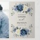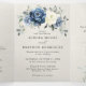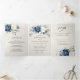 Convite Tri-Fold de casamento floral azul poeirado com buquê elegante de azul-marinho, azul real, branco, dourado, champanhe marfim, rosa cor-de-rosa, botões de ranúnculo e folhas de eucalipto verde-sage e buquê de aquarela elegante. Por favor, entre em contato comigo para qualquer ajuda na personalização ou se você precisar de qualquer outro produto com este design.