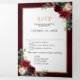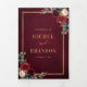 Convite de casamento floral geométrico burgundy azul-marinho escuro com buquê elegante de azul-marinho, azul-real, branco, rosa-claro, burgundy, rosa marsala e folhas de eucalipto verde-sage e moldura geométrica neutra com brilho dourado elegante. Por favor, entre em contato comigo para qualquer ajuda na personalização ou se você precisar de qualquer outro produto com este design.