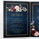 Convite de casamento floral geométrico burgundy azul naval escuro com buquê elegante de azul naval, azul real, branco, rosa suave, burgundy, rosa marsala e folhas de eucalipto verde-sage e moldura neutra geométrica com brilho dourado elegante. Por favor, entre em contato comigo para qualquer ajuda na personalização ou se você precisar de qualquer outro produto com este design.