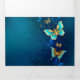 Anúncio Com Dobra Tripla Borboletas de ouro em um fundo azul