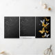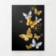 Borboletas Douradas, joias e brancas sobre fundo preto. Borboleta ouro.