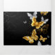 Borboletas Douradas, joias e brancas sobre fundo preto. Borboleta ouro.