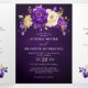 Convite de casamento com tema dourado roxo real elegante com buquê elegante de flores de rosa roxa real, índigo, dourado, amarelo e folhas de eucalipto. Por favor, entre em contato comigo para qualquer ajuda na personalização ou se você precisar de qualquer outro produto com este design.