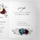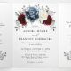 Convite de casamento floral temático em ardósia, borgonha e marfim branco com um buquê elegante de flores de borgonha, ardósia, rosa empoeirada, rosas e peônias em marfim e folhas de eucalipto em verde empoeirado. Por favor, entre em contato para obter ajuda na personalização ou se precisar de qualquer outro produto