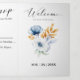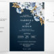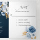 O design apresenta azul poeirento elegante, flores de rosa douradas, brancas e eucalipto. Personalize com os detalhes do seu casamento e encontre designs correspondentes na minha loja "DreamHut".