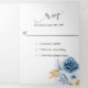Este elegante convite de casamento triplo em azul empoeirado, branco e dourado oferece uma maneira sofisticada e inclusiva de convidar os convidados para o seu dia especial. O design triplo fornece amplo espaço para detalhar todas as informações essenciais do casamento, desde detalhes da cerimônia e recepção até detalhes de acomodação e opções de RSVP, enquanto exibe um belo motivo floral em azul empoeirado sereno e sotaques dourados luxuosos. É uma escolha elegante e prática para casais que buscam um convite de casamento abrangente e memorável.
