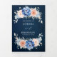 Convite de casamento floral rosa bege azul naval com um buquê elegante de azul naval, azul real, branco, rosa bege de jardim, hortênsia e folhas de eucalipto verde sálvia. Por favor, entre em contato comigo para qualquer ajuda na personalização ou se você precisar de qualquer outro produto com este design.