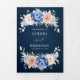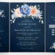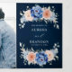 Convite de casamento floral rosa bege azul marinho com um buquê elegante de azul marinho, azul real, branco, rosa bege de jardim, hortênsia e folhas de eucalipto verde-sage. Por favor, entre em contato comigo para qualquer ajuda na personalização ou se você precisar de qualquer outro produto com este design.