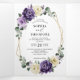 Convite de casamento floral elegante e moderno de verão apresenta um buquê de rosas peônias aquareladas em tons de ameixa roxa, rosa empoeirado, marfim, sage com folhas botânicas verdes exuberantes e eucalipto com fundo geométrico dourado. Encontre mais designs e variações correspondentes na minha loja "blissweddingpaperie". E sinta-se à vontade para entrar em contato comigo para personalização adicional ou itens correspondentes.