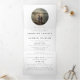 Eficiente e elegante, este convite de casamento tri-fold tudo em um tem vibrações clássicas com texto editável em estilos de tipografia tradicionais e um toque de moderno com sua foto favorita no topo emoldurada em um formato circular moderno. Economize papel e elimine cartões de inserção com espaço para informações de rsvp online e url do seu site de casamento.