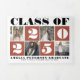 Classe de tipografia em negrito de 2023, lançamento em trifagem de fotos de terracotta. Ele mostra uma colagem de fotos de quatro fotos com o texto '"Classe de 2023" em quadrados de terracota no cobrir. O primeiro e último painéis de dentro, assim como o flap externo, apresentam mais fotos com bordas de terracota. O painel do meio do dentro exibe os detalhes do seu anúncio enquanto o verso externo inclui o texto "Parabéns Formando" com um boné de formatura.