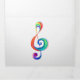Chave musical desenhada a partir de camadas multicoloridas de cores do arco-íris sobre fundo branco.