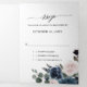 O convite para o casamento floral elegante e moderno de meio-verão apresenta um buquê de pénicas rosas de aquarela em tons de ardósia, azul empoeirado, cor-de-rosa empoeirado, mauve, sábio com folhas botânicas verdes e eucalipto. Por favor, encontre mais designs e variações na minha loja de "blisswedingpaperie". E fique à vontade para me contactar para mais personalizações ou itens correspondentes.